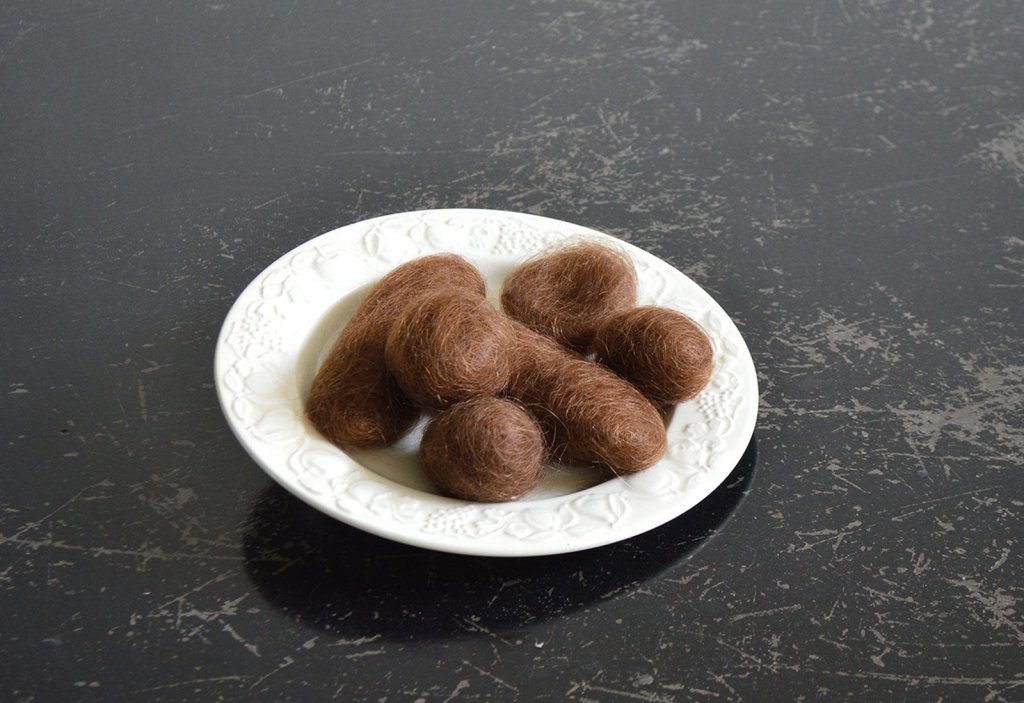 « L’anxiété », pelotes de cheveux, assiette, 2002-2015, © Adagp. Collection de l’artiste.