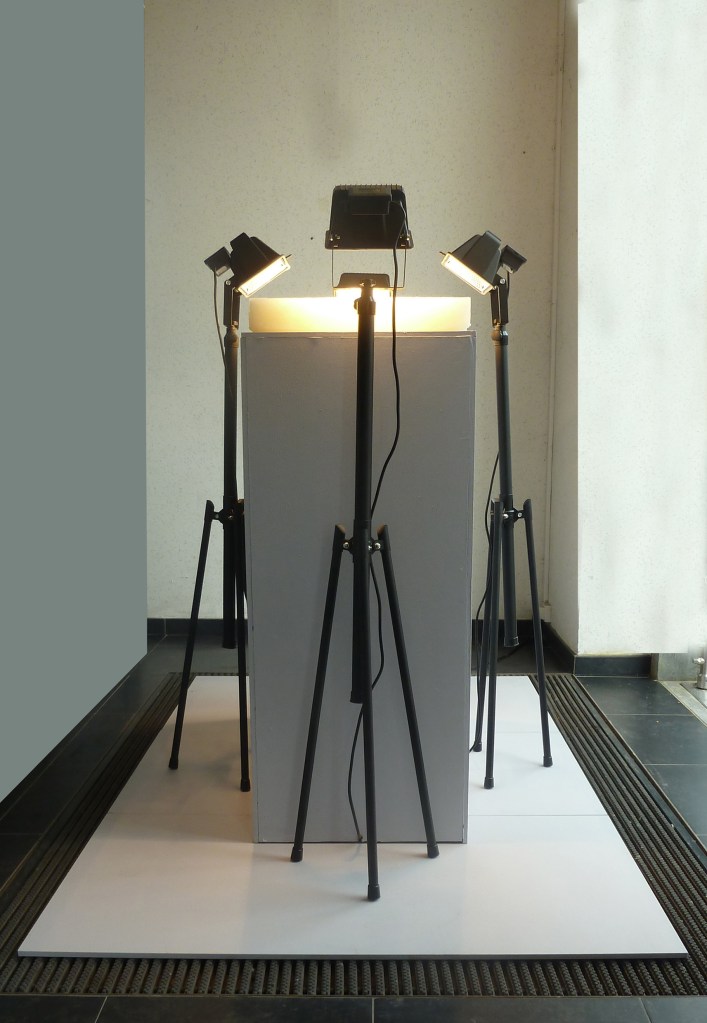 « Mémoire aléatoire » cire, socle MDF peint, projecteurs, 2013, © Adagp.