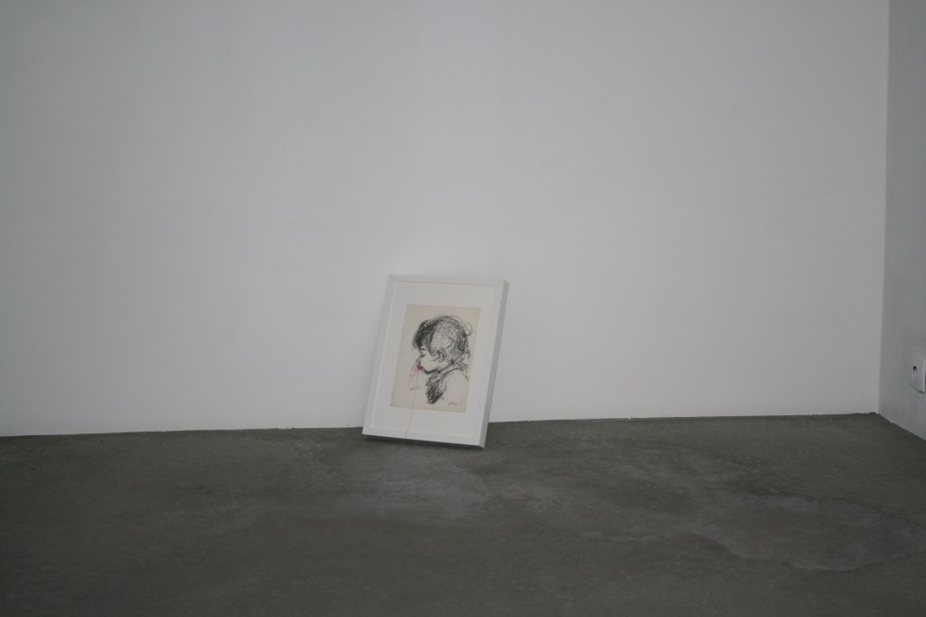 Chut (série Héritage) prend comme point de départ un portrait réalisé par le père de l’artiste alors qu’elle était enfant. Ilona Tikvicki a modifié ce portrait intime en cousant la bouche d’un fil rouge renvoyant de cette manière à la difficulté d’assumer un héritage tout en exprimant les liens indéfectibles qui inscrivent notre existence dans une généalogie. Chut s’inscrit dans la série « Héritage » (débuté en 2008) dans laquelle l’artiste s’attache à interroger ses propres mythologies familiales qui transitent par l’image picturale et photographique.